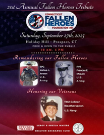 The Connecticut Fallen Heroes Foundation, Inc. is a 100% volunteer organization which is dedicated to “always remembering” the brave service men and women from Connecticut as well as our country, who paid the ultimate sacrifice or were accidently killed in uniform.